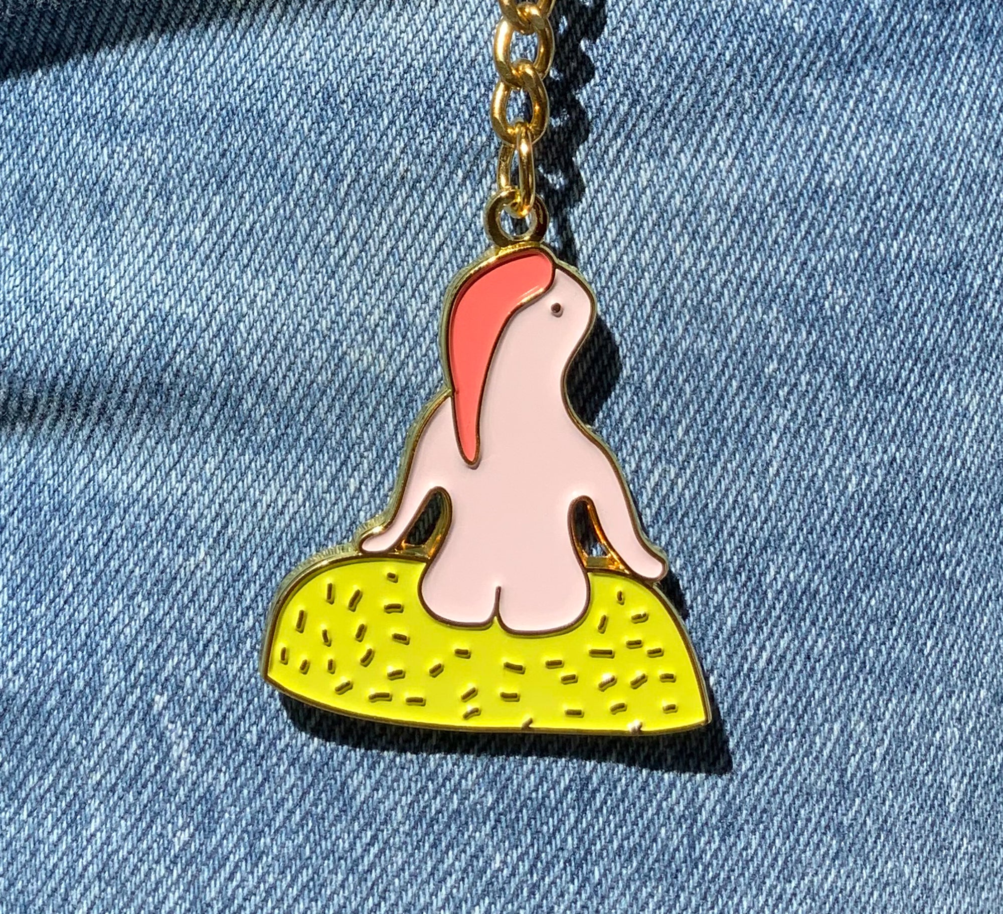 מחזיק מפתחות בעיצוב ייחודי של האמנית נועה גופר, המשלב את עולמה היצירתי והדימויים המיוחדים שלה