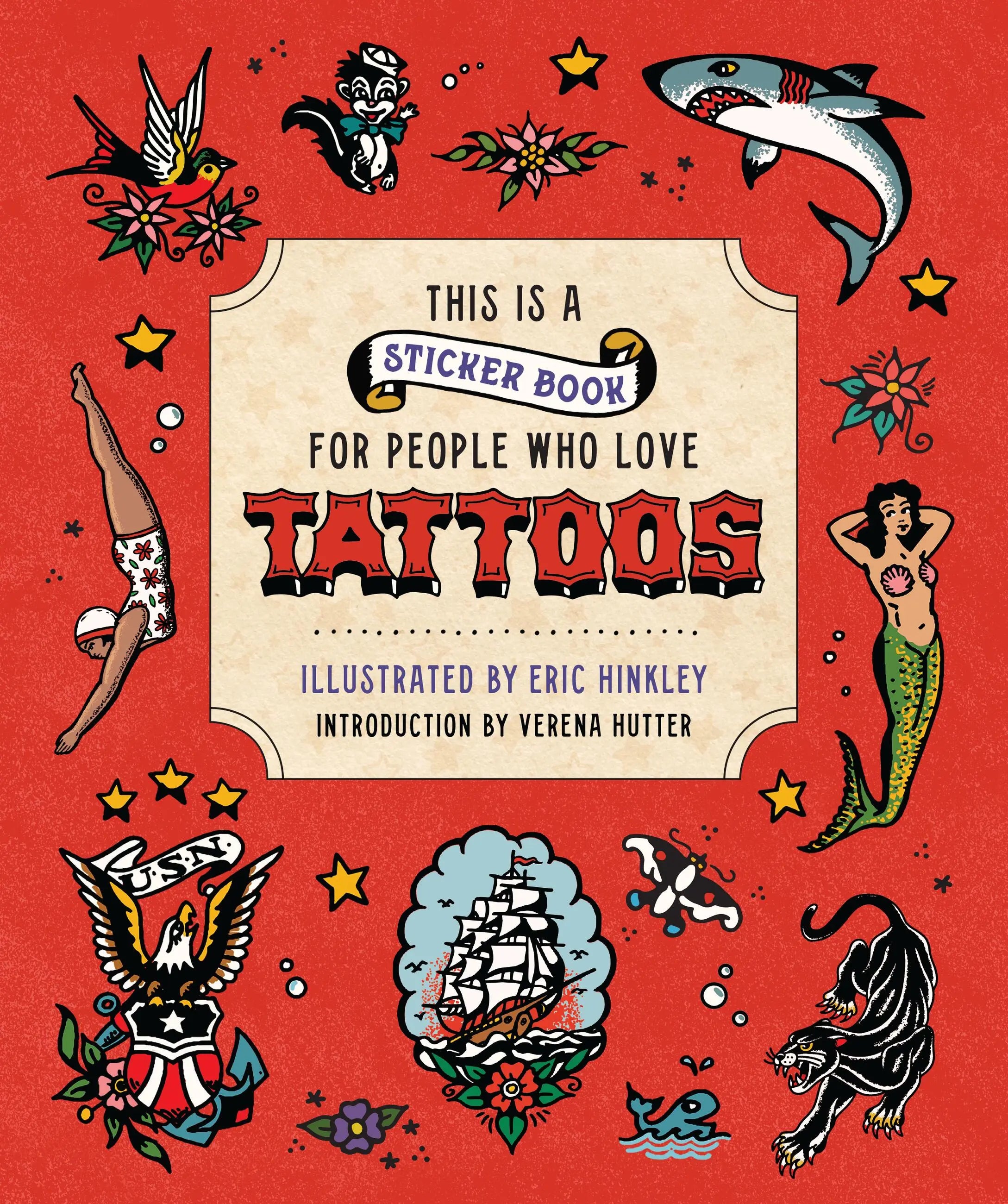 This Is a Sticker Book for People Who Love Tattoos ספר זה מציג לראווה עם למעלה מ-225 מדבקות. בתוך הספר הצבעוני הזה ישנם עיצובים קלאסיים של קעקועים בכל הצורות והגדלים. שלושה גליונות של מדבקות אותיות