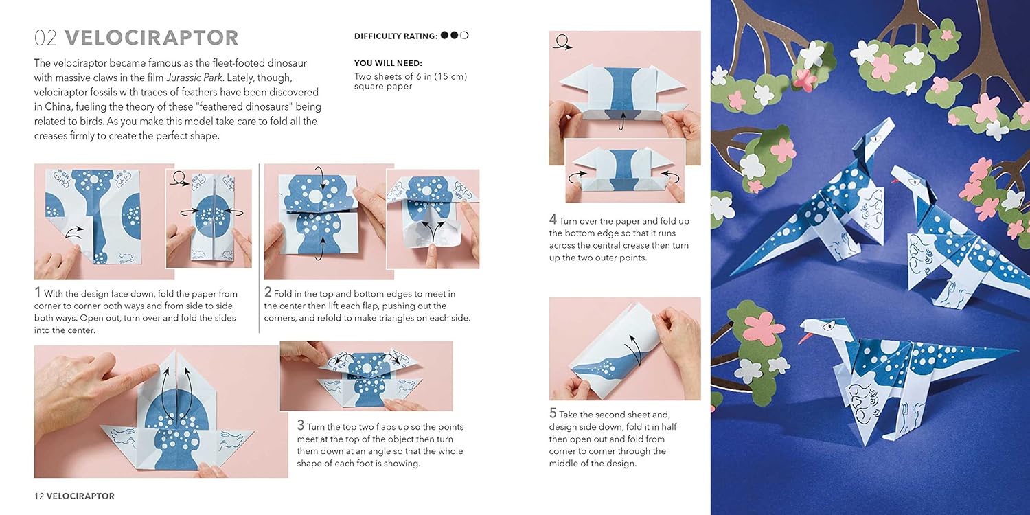 הסט המטורף הזה כולל 15 פרויקטים שונים של דינוזאורים, יצורי ים מפלצתיים ואפילו כאלה שיודעים לעוף. בפנים תמצאו הוראות פשוטות וצילומים ברורים, שיסבירו לכם צעד אחרי צעד איך לקפל ולהפיח חיים ביצורים האגדיים האלה. תוכלו להתחיל עם משהו קל כמו וולוצירפטור זריז, ולהתקדם למשהו מורכב יותר כמו האפטוזאורוס הענק. ואם בא לכם משהו מפחיד באמת, אתם יכולים לקפל טי-רקס או את המוזאזאורוס, שהוא האבא של התנין המודרני.