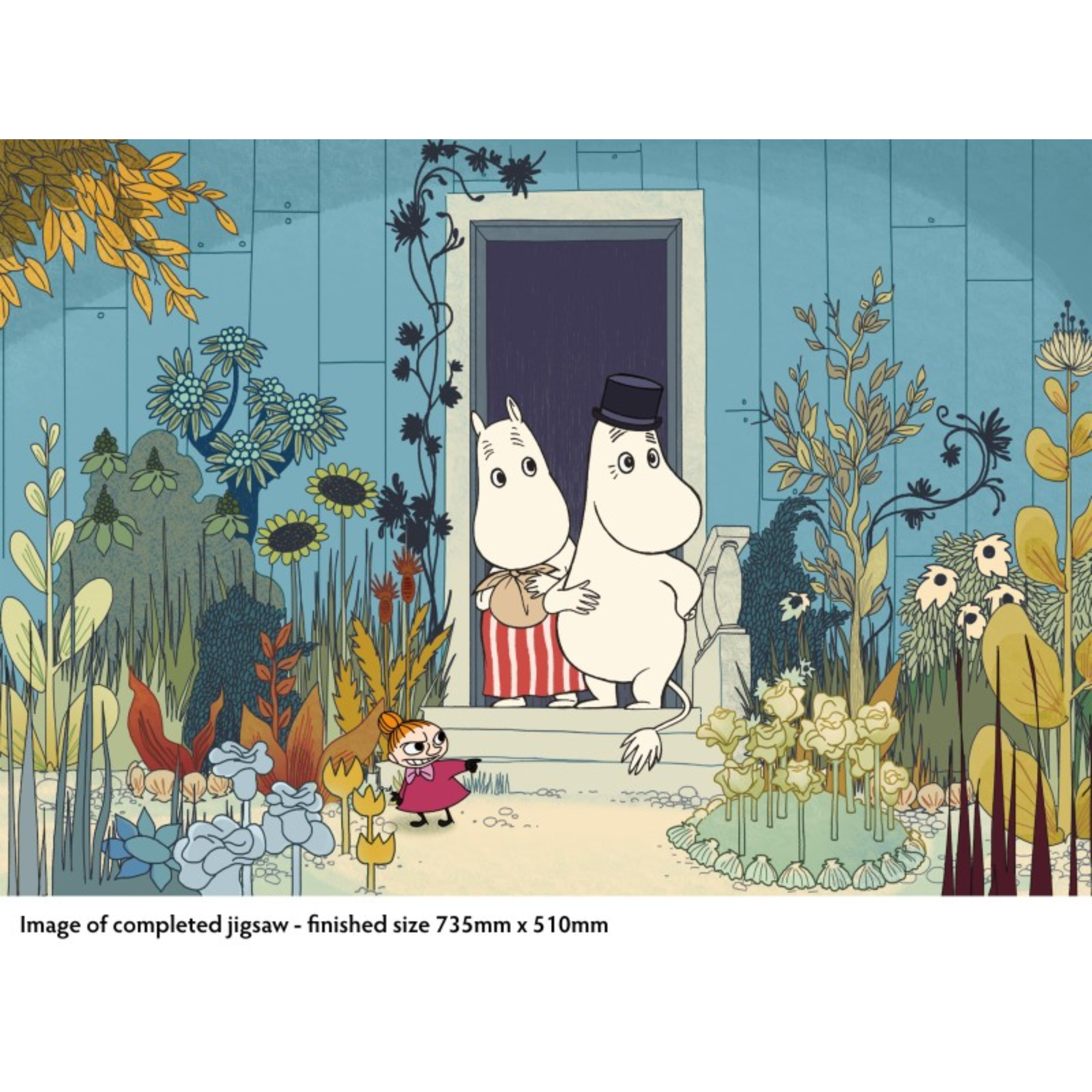זהו פאזל באיורה של טובה ינסון, סופרת ומאיירת פינית-שוודית שהביאה לעולמנו את משפחת המומינים וחבריהם. מומינאבא ומומינאמא, לצד מאי הקטנה, עומדים בפתח הבית הכפרי שלהם בריביירה, ולכם רק נותר לשים הכל בצד וליהנות מהאווירה שהאיור הזה משרה בזמן שאתם מרכיבים את הפאזל.