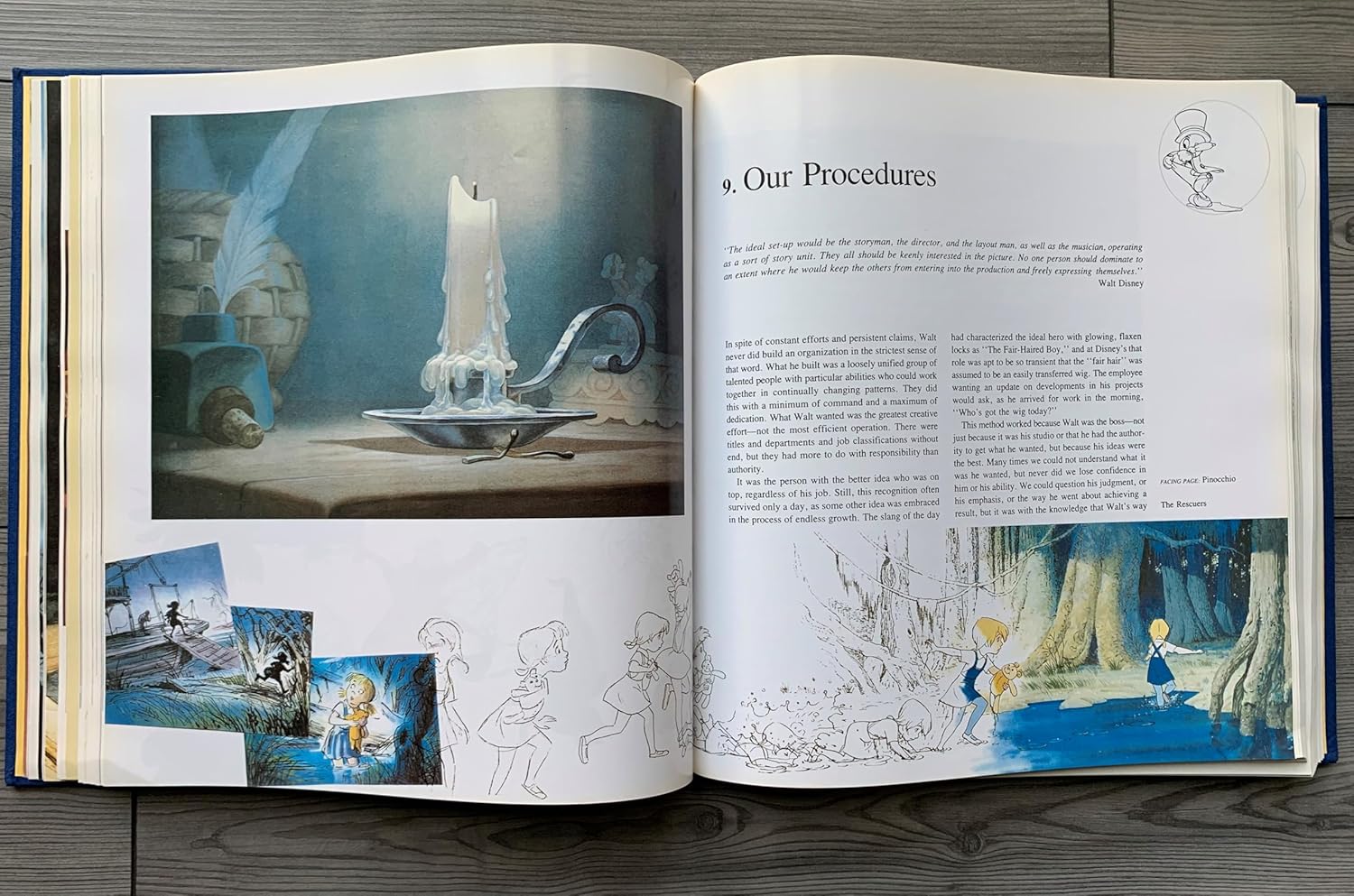 בספר תוכלו לקרוא על תהליך הפיתוח הקפדני של טכנולוגיית אנימציית הדמויות של דיסני לצד שפע של רישומים היסטוריים מקוריים ששימשו ליצירת כמה מהדמויות האהובות ביותר בתרבות האמריקאית: מיקי מאוס ודונלד דאק, שלגיה ובמבי, וגם סקיצות מוקדמות ששימשו לפיתוח סצנות בלתי נשכחות מיצירות קלאסיות כמו פנטזיה ופינוקיו.