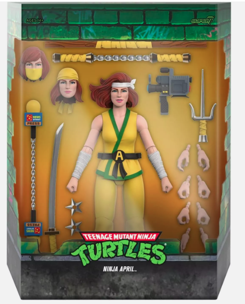 קבלו את הבובה האולטימטיבית בגודל 18 ס"מ של אפריל הנינג'ה, עם ראשים וידיים מתחלפות, מבחר כלי נשק קומפקטיים, כוכבי נינג'ה, וכמובן – מצלמת וידאו!
