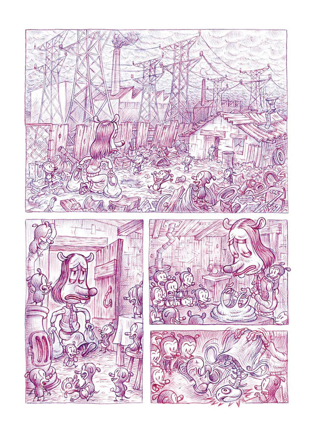 הקומיקס בשני הצבעים של יאן טיילפר מציג סאטירה חריפה על עולם אבסורדי, דרך עיניהם של עכבר, חמנייה ומצית. הוא חושף את טבעה האפל של הצרכנות והניצול