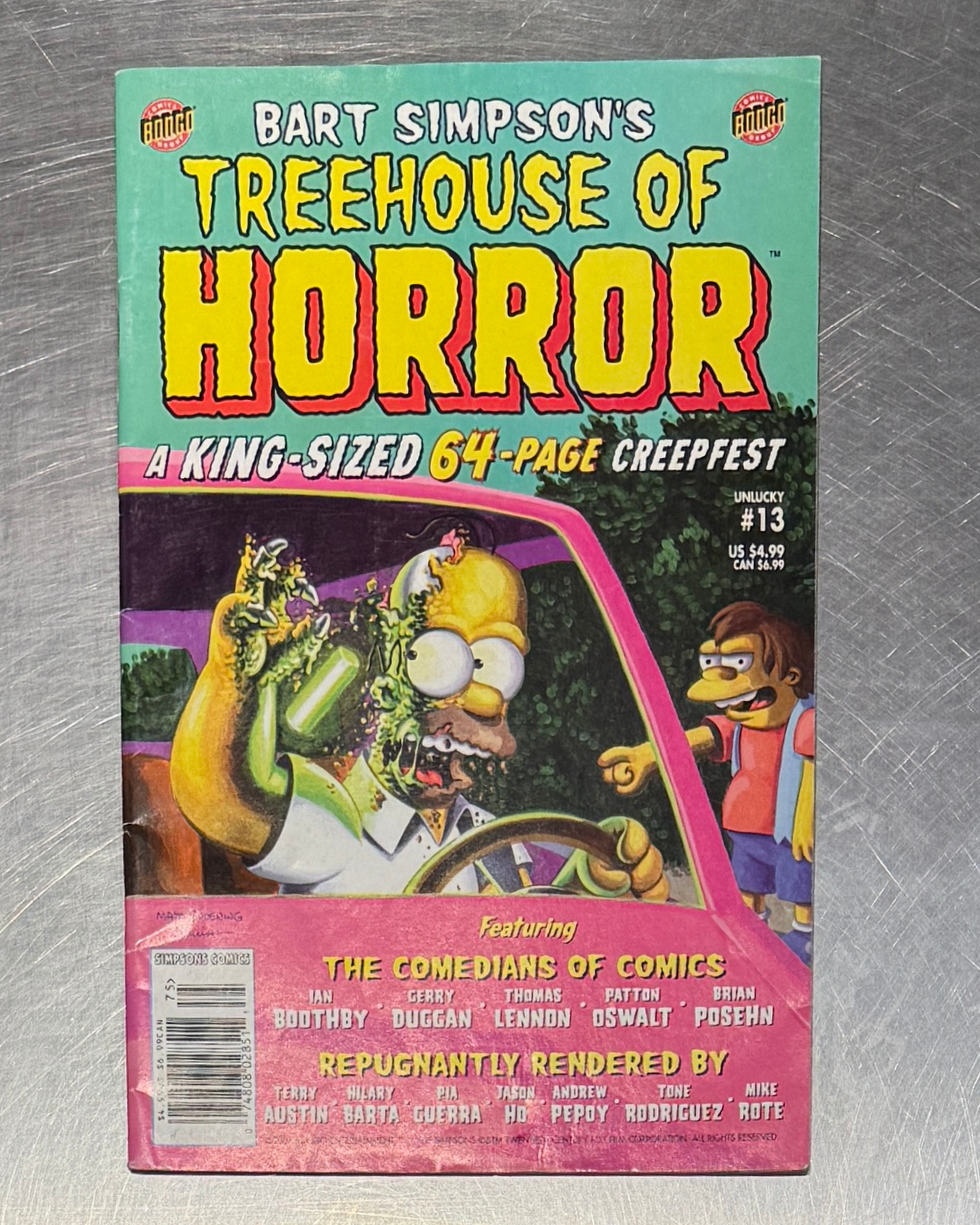זהו עותק יד שניה של חוברת מתוך סדרת ה-"Bart Simpson's Treehouse of Horror", כרך מס' 13.
