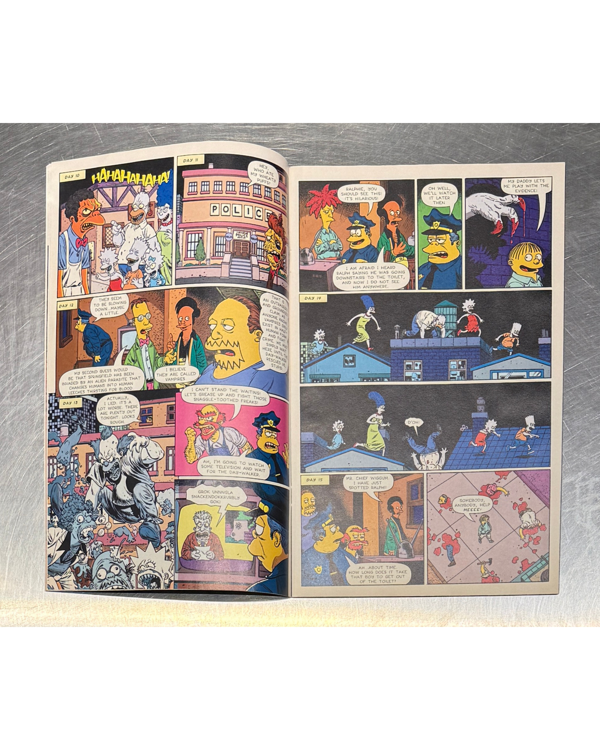 זהו עותק יד שניה של חוברת מתוך סדרת ה-"Bart Simpson's Treehouse of Horror", כרך מס' 14.