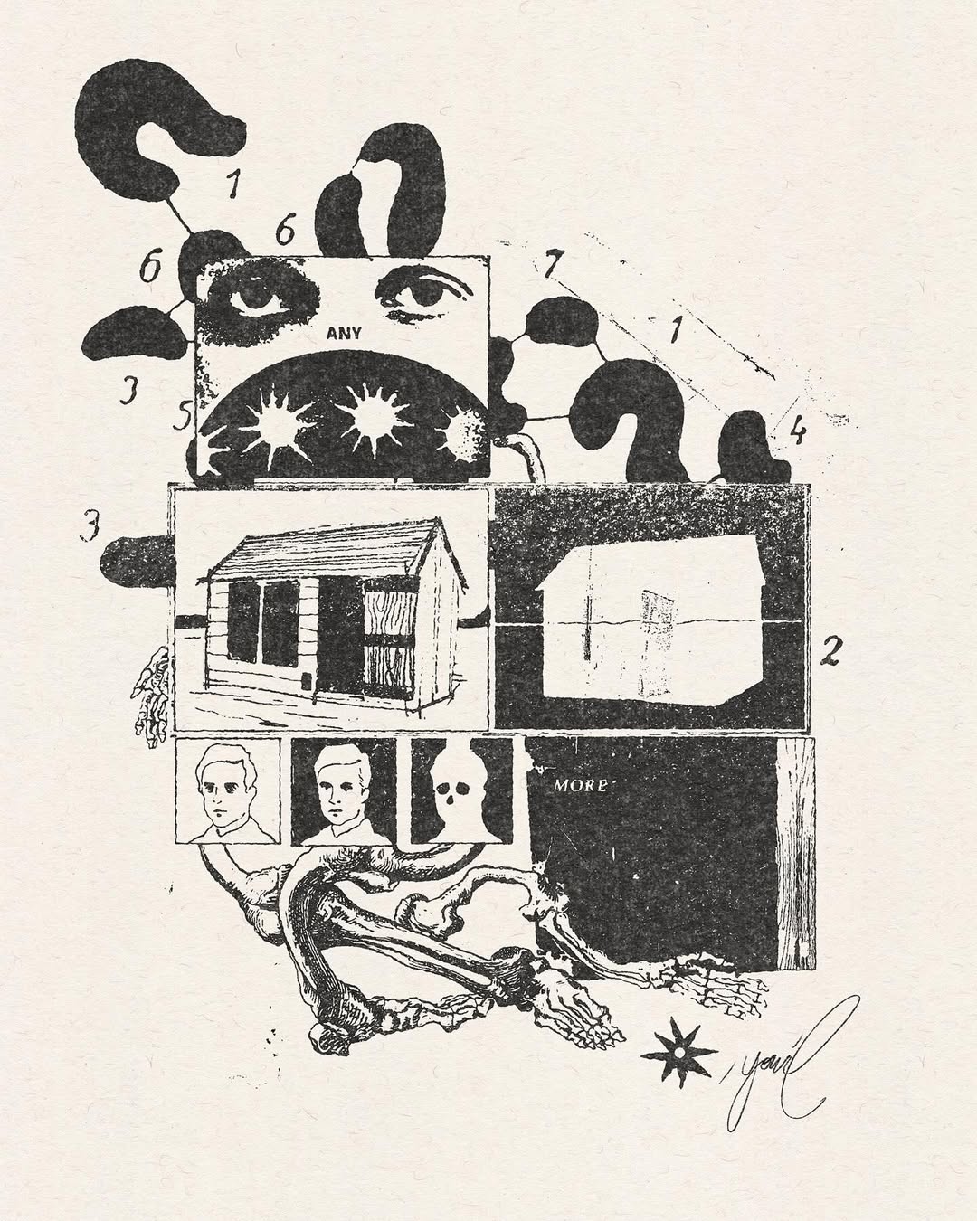 פרינט דיגיטלי איכותי של האמן יוניל, המשלב דימויים סוריאליסטיים ופנטסטיים