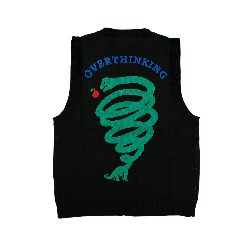הווסט Overthinking עוצב על ידי האמן פופיק - יצירת אמנות לבישה! עם איורים צבעוניים וסגנון ייחודי, הווסט משלב אופנה ואמנות בצורה מושלמת. פריט בולט ושיקי לכל מי שמעריך עיצוב מקורי