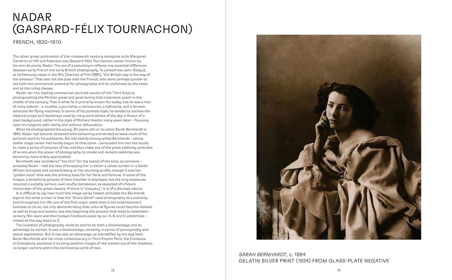 בכל עמוד תמצאו תמונה שצולמה בטכניקות שונות - מקאלוטייפ וקולאז'ים ועד הדפסים מודרניים בליווי הסבר קצר ומעמיק של באדג'ר. הוא מדבר על הכל: מפורטרטים של "מתים" מהמאה ה-19, דרך סוגיות של קולוניאליזם וגזענות, ועד לפורטרט של השחקנית הראשונה שנחשבה לסלב. זהו לא רק ספר על צילום, אלא שיעור מאסטר באמנות הפורטרט שיפתח לכם את הראש