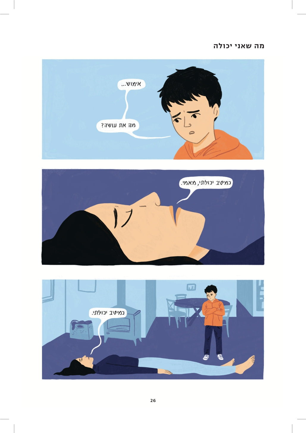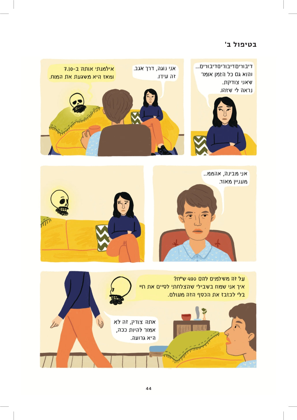 בשבועות ובחודשים שלאחר מותו היא תיעדה בסיפורי קומיקס חדים ובועטים את האובדן – את כוחו המאיין, את רגעיו האבסורדיים, ואת הידחקותו לכל פינה של תודעתה ושל חייה.