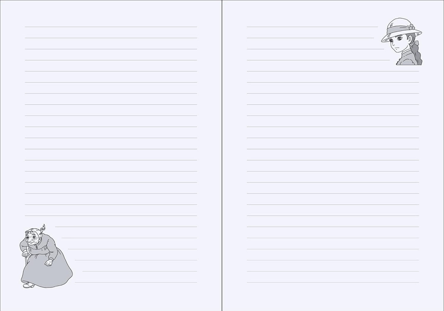 המחברת מגיעה עם סרט סימניה נוח לשימוש, וכוללת חמישה עמודים כפולים בצבע עם אמנות קונספט נדירה של סטודיו ג'יבלי