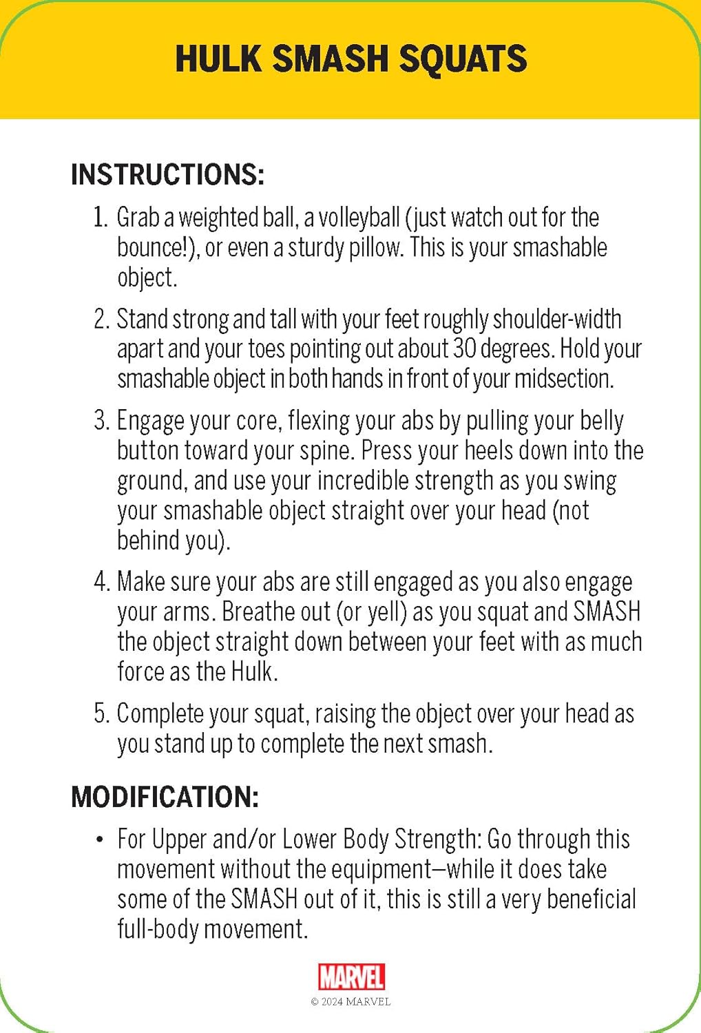 זו ההזדמנות שלכם להיות חטובים וחזקים כמו גיבורי וגיבורות העל של מארוול! חפיסה בת 50 קלפים של תרגילי כושר על-אמת למעריצים בכל הגילאים