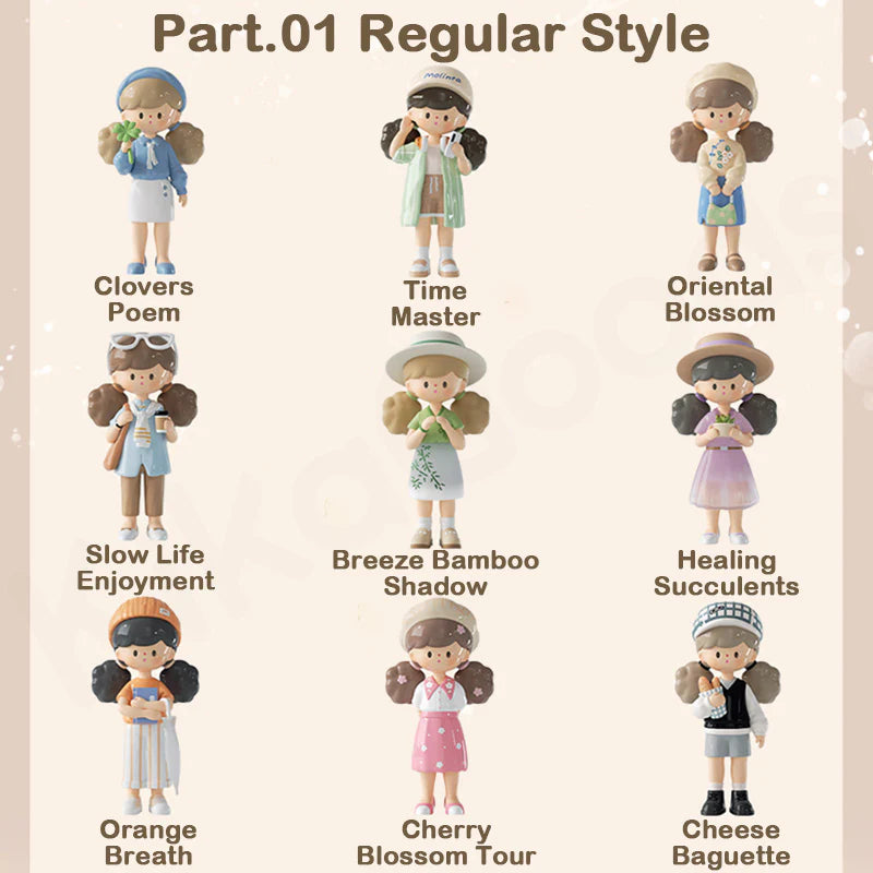 גלו את הקסם של סדרת Molinta Spring City Wandering, כל קופסה מכילה בובת ויניל מעוצבת (כ־11 ס"מ) ודמות נבחרת בהפתעה מתוך מגוון דמויות צבעוניות וייחודיות