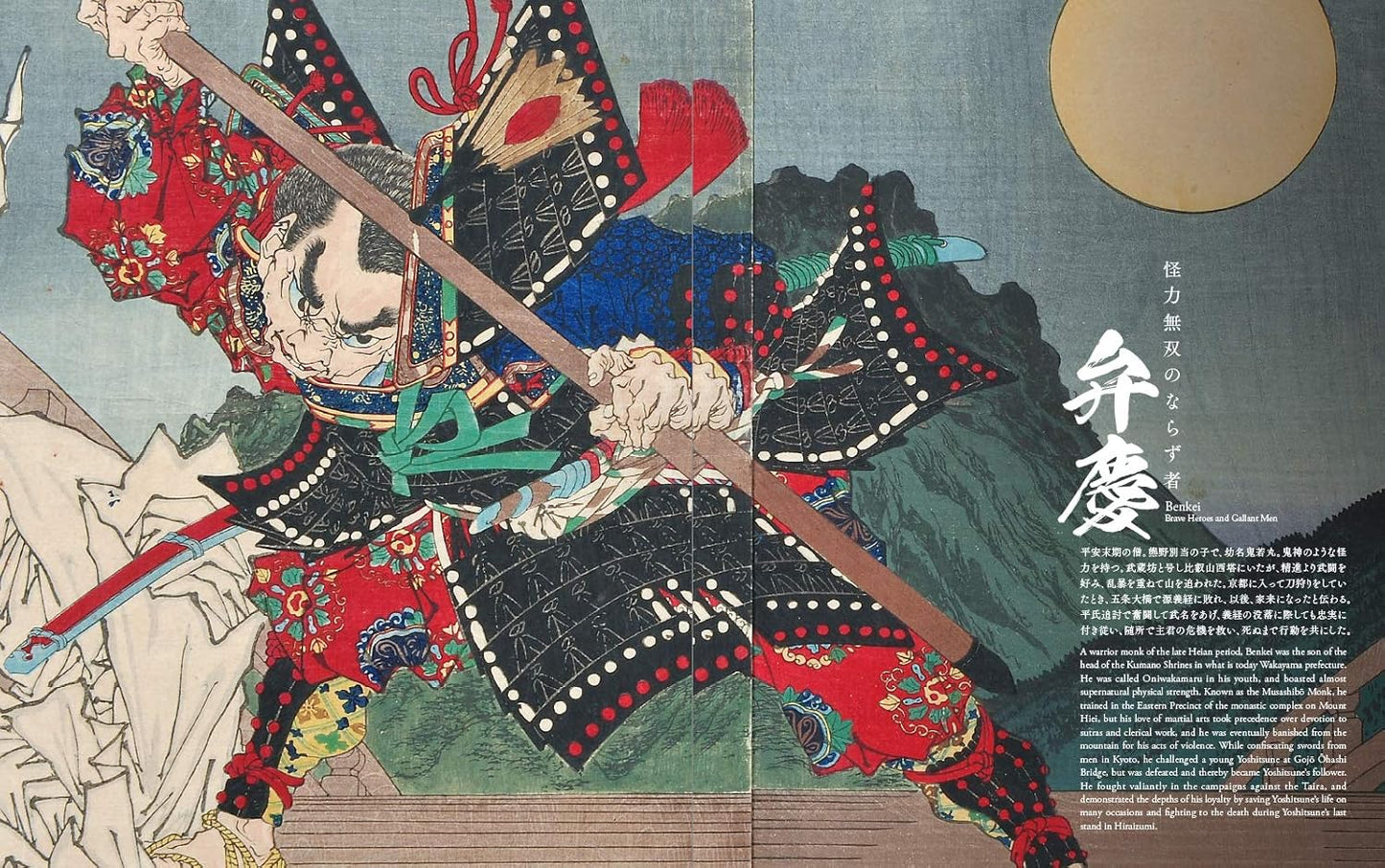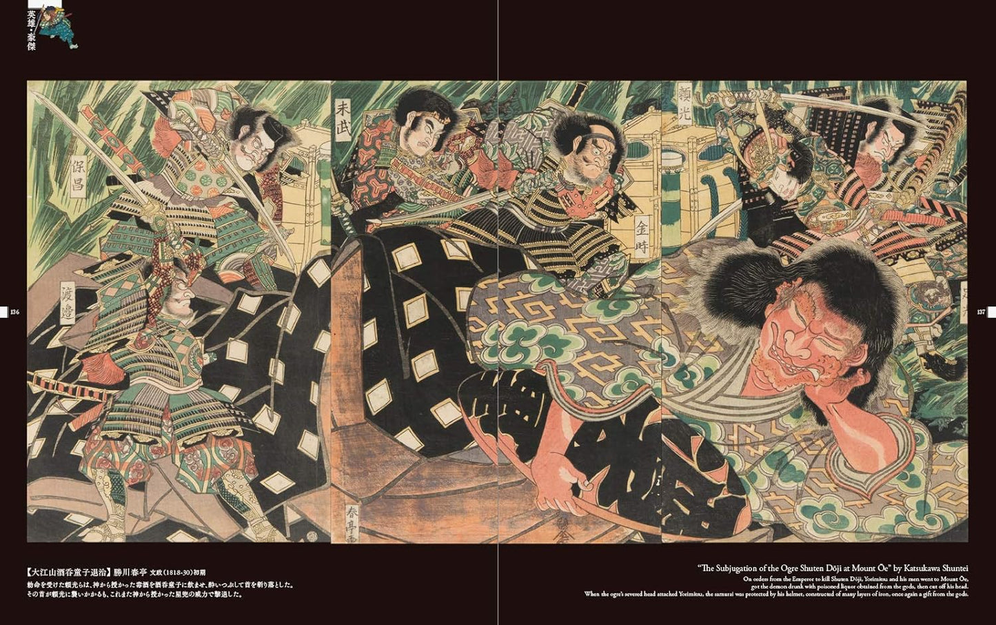 ספר זה מציג יצירות Ukiyo-e המדהימות, המשלבות דמויות של לוחמי סמוראי וגיבורי תרבות יפנית
