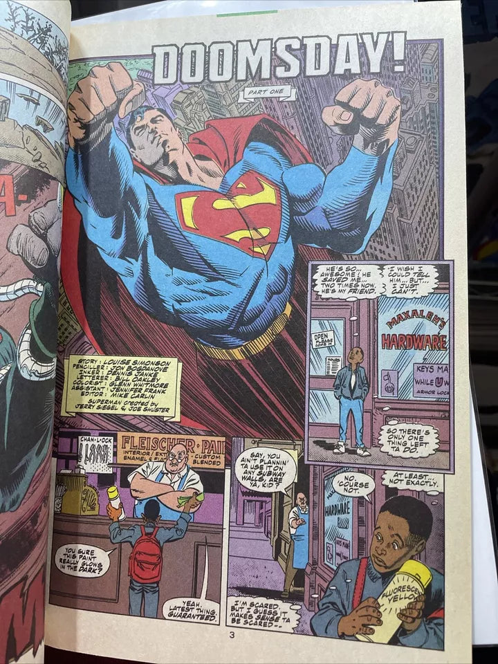 Part 1 of the 7-part 'Doomsday': A pivotal event is coming in the Man of Steel's life as Doomsday arrives...and Superman would be best served to stay out of the way! Continues in Justice League America (1987) #69 and then in Superman (1987) #74. Written by Louise Simonson, with art and cover by Jon Bogdanove and Dennis Janke.