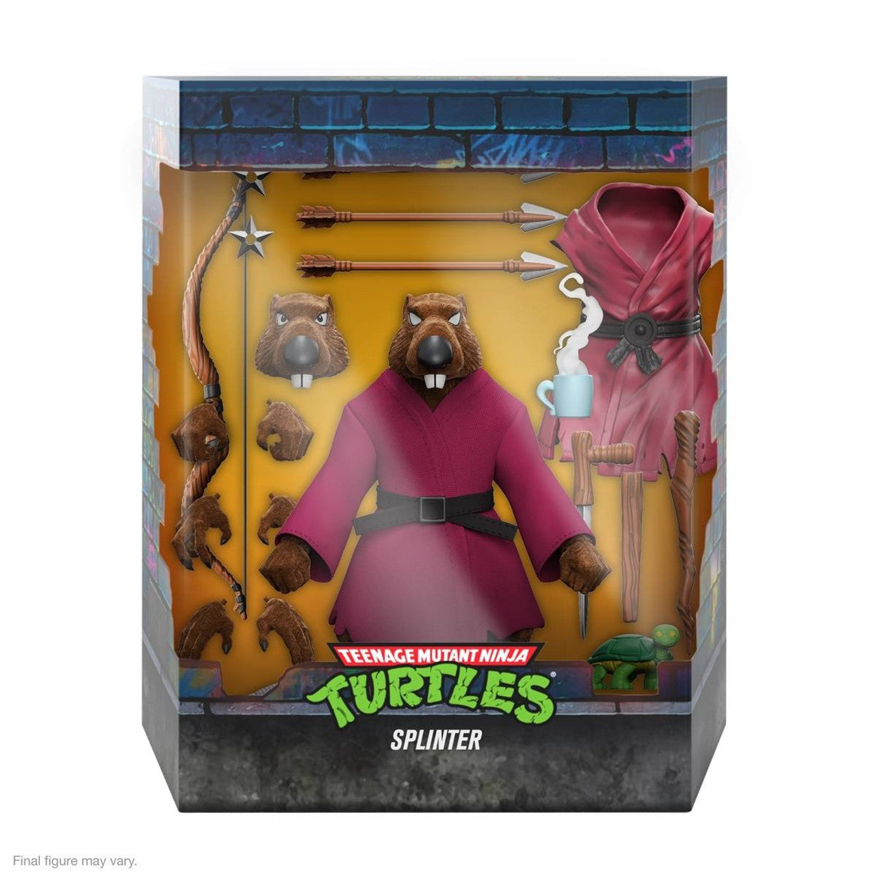 הדמות של ספלינטר מגיע בגודל 18 ס"מ כוללת אביזרים נוספים רבים, כולל מספר ראשים וידיים מתחלפים, חלוקים רכים ופלסטיים, מקל הליכה הכי מפורסם שיש ומבחר מכלי הנשק המזוהים כל כך עם ספלינטר!