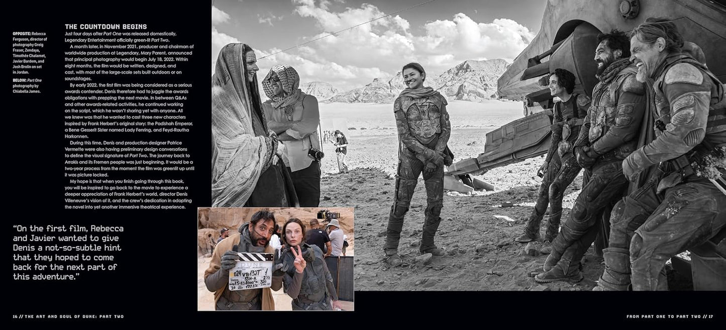 "The Art and Soul of Dune | Part Two" כולל גם ראיונות בלעדיים עם חברי מפתח בצוות השחקנים והצוות, כולל דניס וילנב, טימותי שאלאמה, רבקה פרגוסון ורבים אחרים, ומספק תיאור כנה וייחודי של הצילומים הבינלאומיים השאפתניים ביותר.