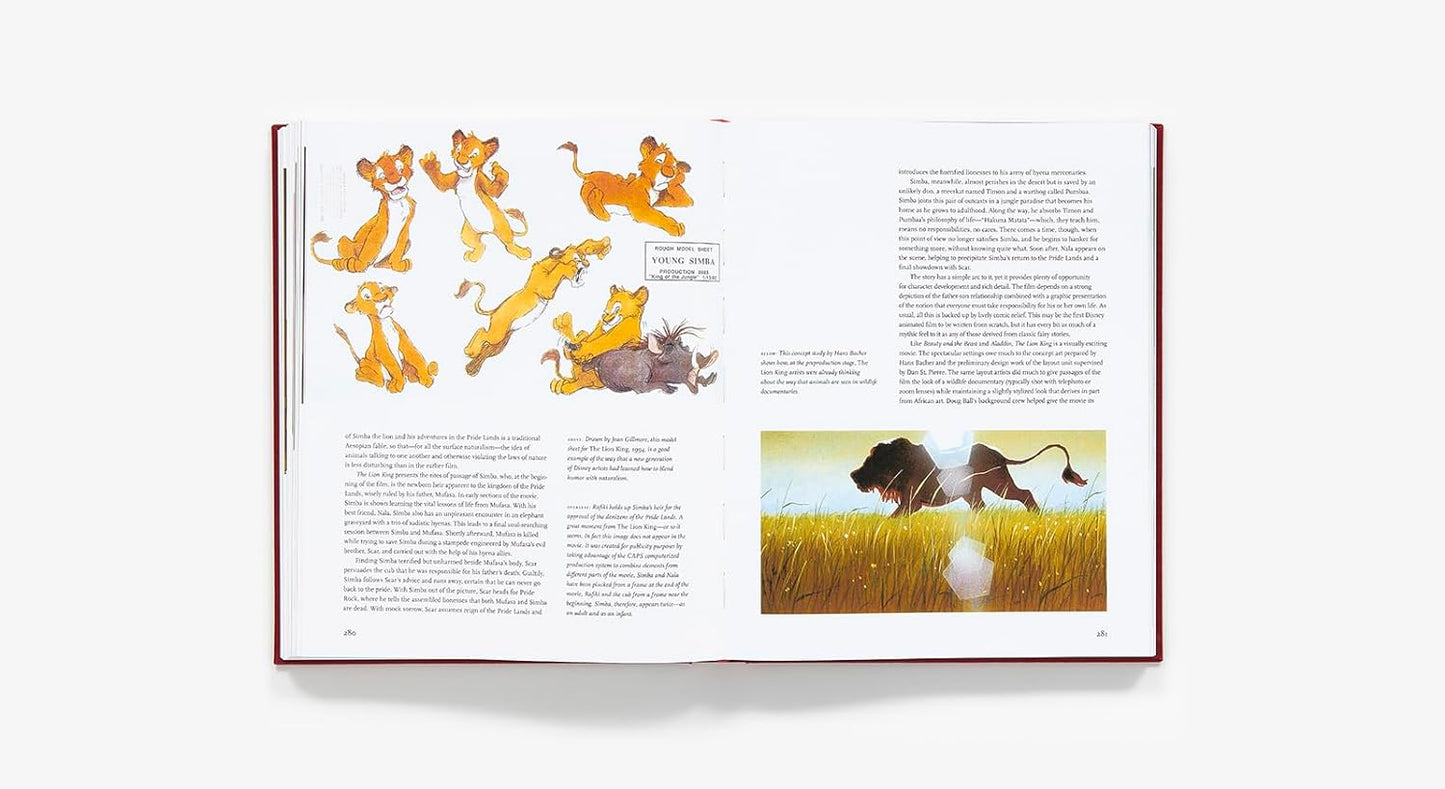 הספר צולל אל ההיסטוריה של הממלכה הקסומה שיצר וולט דיסני - איורים, טיוטות, הסיפורים מאחורי כל היצירות מימי מיקי מאוס כרב-חובל ועד ימי פיקסאר העליזים.