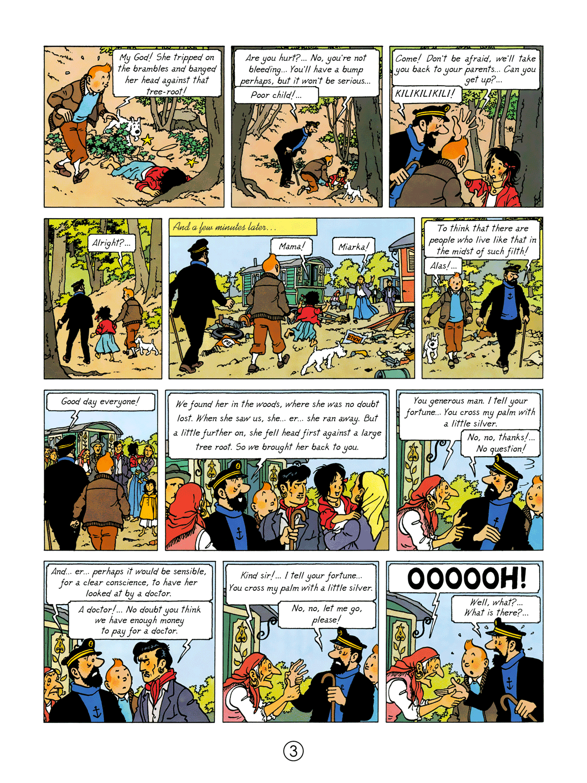 טינטין, הכתב הנודד המפורסם ביותר בעולם חייב לנסות לתפוס גנב אמרלד. כאשר קפטן הדוק פוגש קוראת בכף היד צוענית, הוא מזלזל באזהרה שלה על תכשיטי אבן חן גנובים של אישה יפה. אך כאשר הזמרת האופרה המפורסמת, ביונקה קסטפיורה, מגיעה בפתאומיות להיכל מרלינפייק, נראה כי תחזית הצוענית מתגשמת