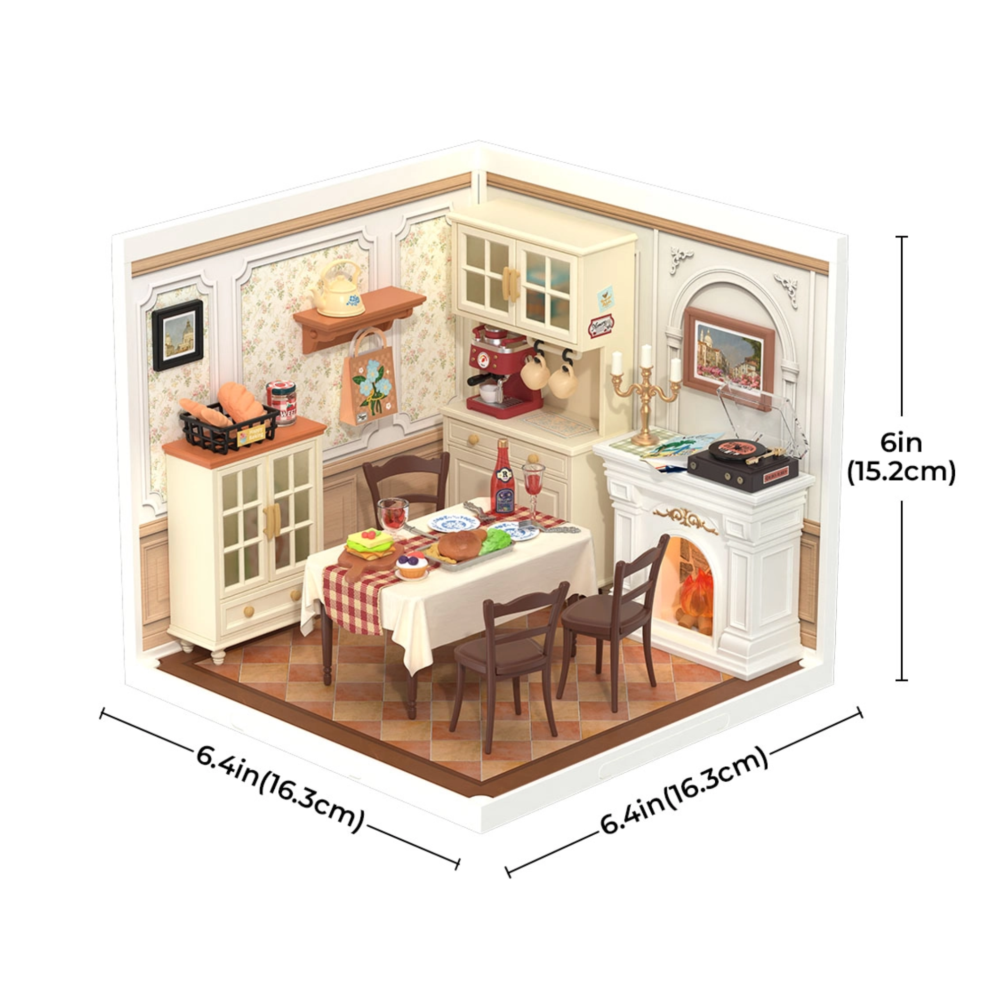 הדגם Warm Dining Room מדמה פינת אוכל ביתית באווירה וינטג’ית חמימה, עם פריטים קטנים ומלאי אופי, מהכיסאות והשולחן ועד הלחמים, המאכלים המגרה והמשקאות המרעננים. הערכה כוללת גם רהיטים ומכשירי מטבח קטנים שמוסיפים חיים לסצנה, כך שתוכלו להרכיב ולעצב את פינת האוכל המושלמת לפי הטעם שלכם. חוויה יצירתית שמתאימה לכל מי שאוהב עיצוב נוסטלגי, דיוק בפרטים או סתם מעדיפים את האוכל של הבית על פני ביקור תכוף במסעדות.