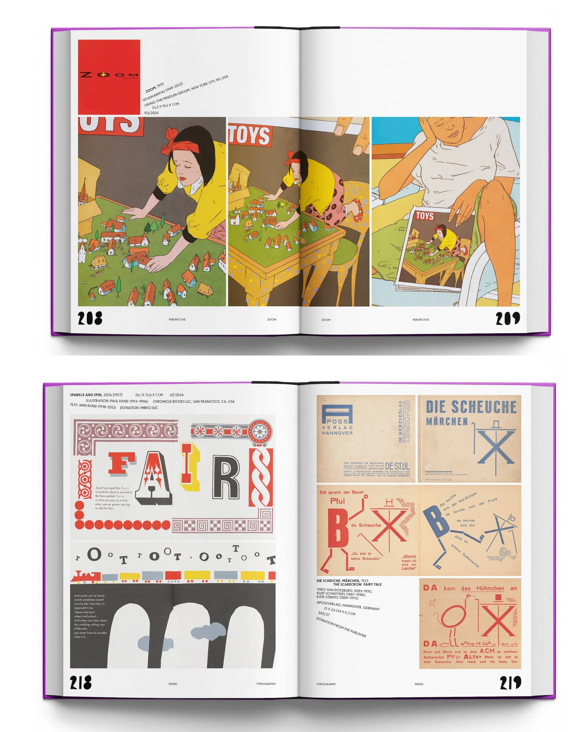 הדוגמאות בספר, ששייכות לאוספים ממוזיאון העיצוב במינכן, כוללות קלאסיקות אוניברסליות כמו פיטר הארנב (לימים פיטר ראביט), המלך בבר וארץ יצורי הפרא, לצד ספרי ילדים אהובים ממדינות ותרבויות שונות ברחבי העולם.